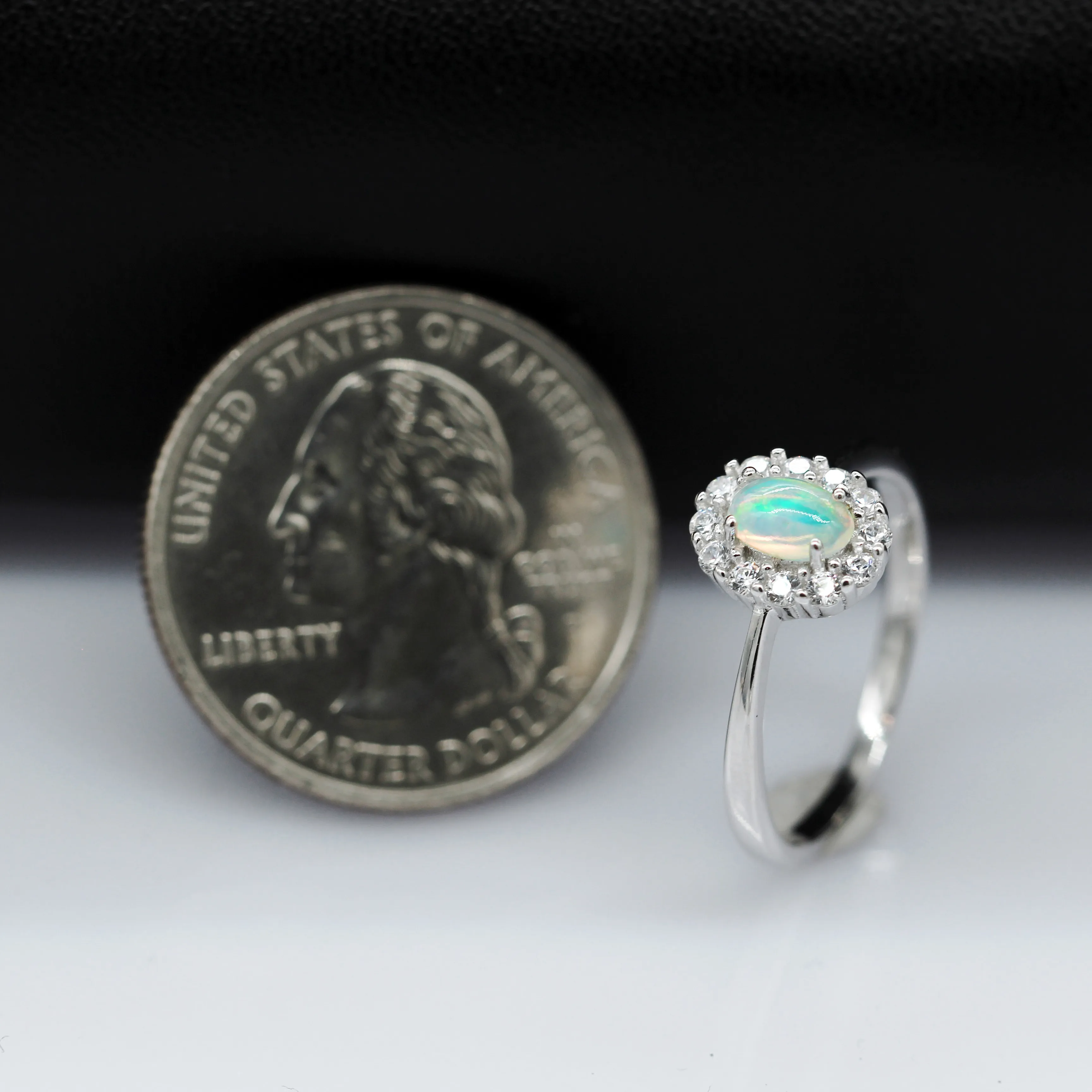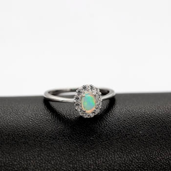 The opal stone is multi-colored and oval shaped and rests on an intricate metallic work which gives this ring an extra edge.