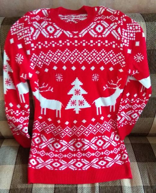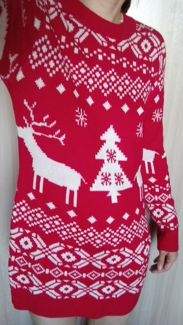 I really liked the dress-sweater! Very bright, elegant, new year. Binding machine, dense. The pattern is adjusted very well. In general, the sweater is soft and warm. Corresponds fully to the photo in the store. Composition 100% artificial wool (acrylic). Took the size m on og 84, OT 65, OB 94, height 172 cm. Freely, as I like, sleeves of good length.