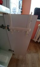 To the order of St. Petersburg was 45 days. for me-a very long time. in general-not bad hard plastic. hung under sink on the door hooks inside. the thickness of the door can be up to 2 cm exactly. everything is very simple, but it could be cheaper.