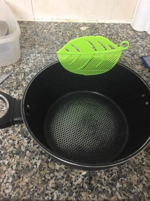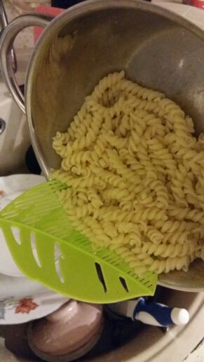 A complete mess) falls with pan with pasta)