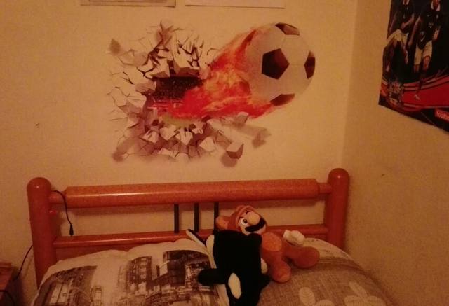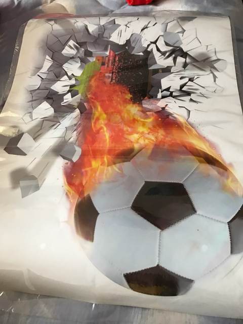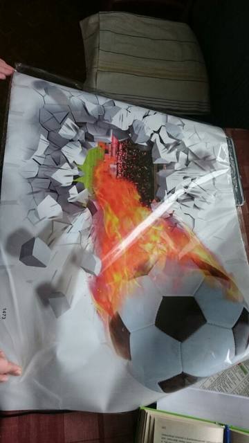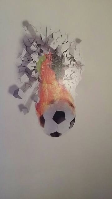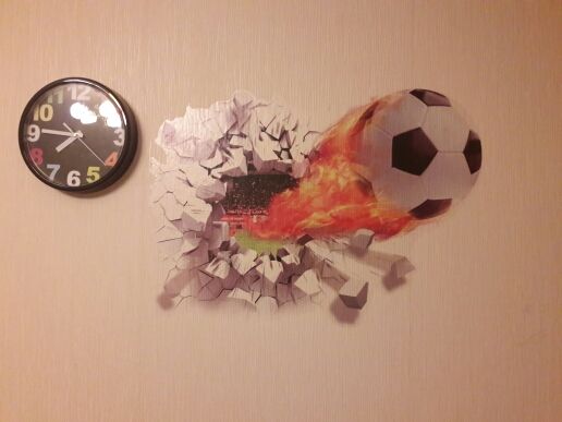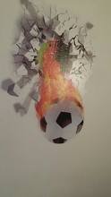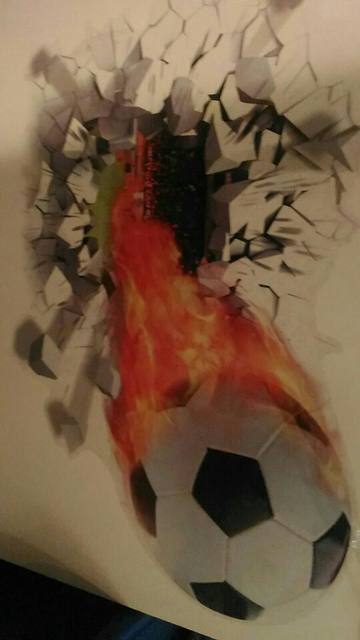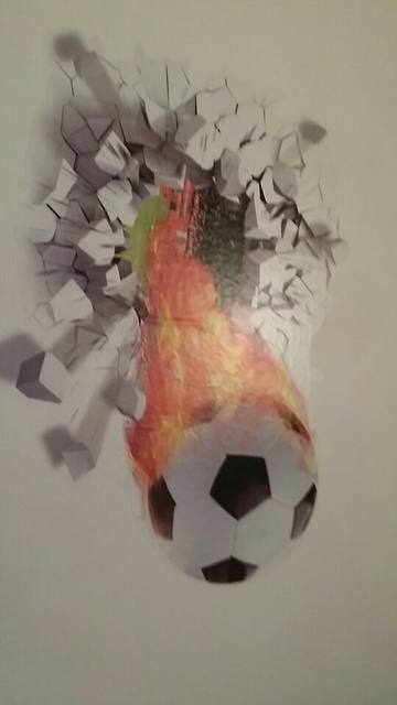 This great 3D effect wall sticker is perfect for any football fan, creating the effect of the ball coming through the wall (without the cost of the real damage!). Simple and effective, why not add with our personalized Football Shirt wall sticker to complete the look?