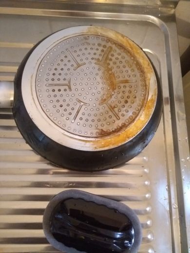 Real washes chronic burnt fat and oil from dishes without detergent.
