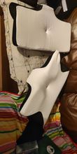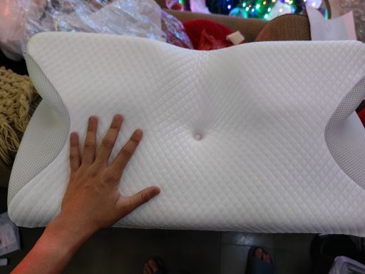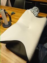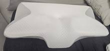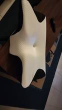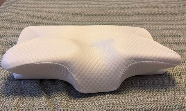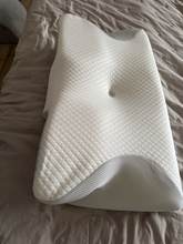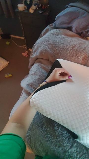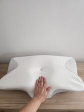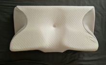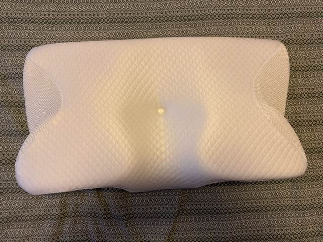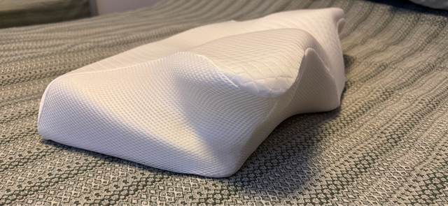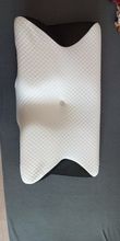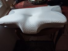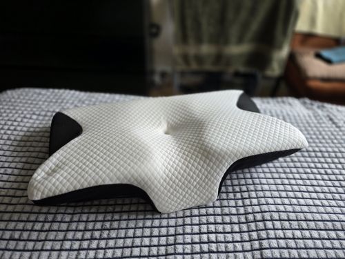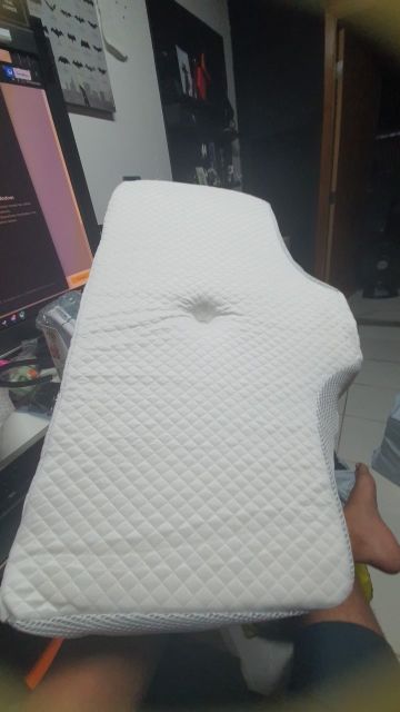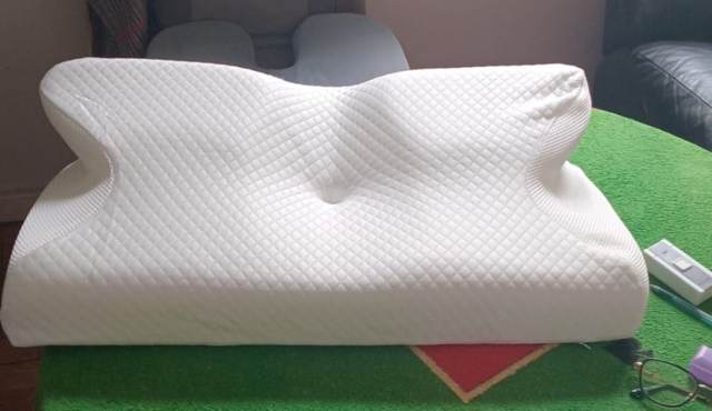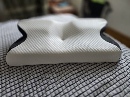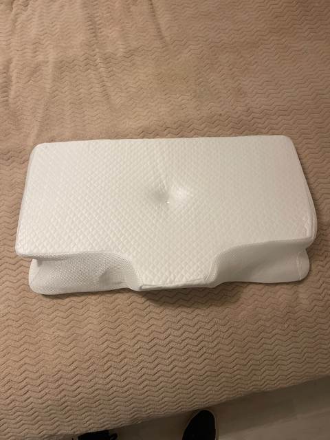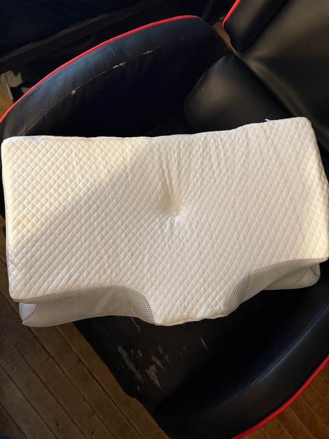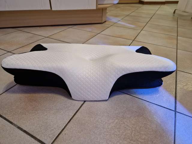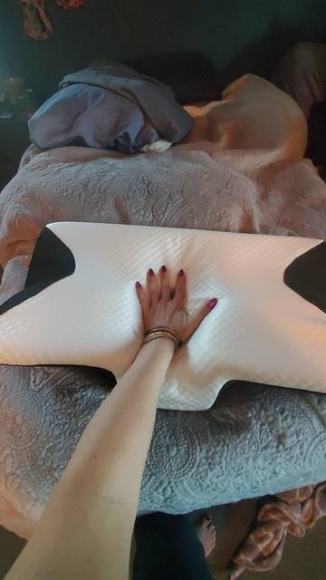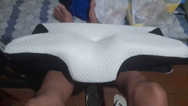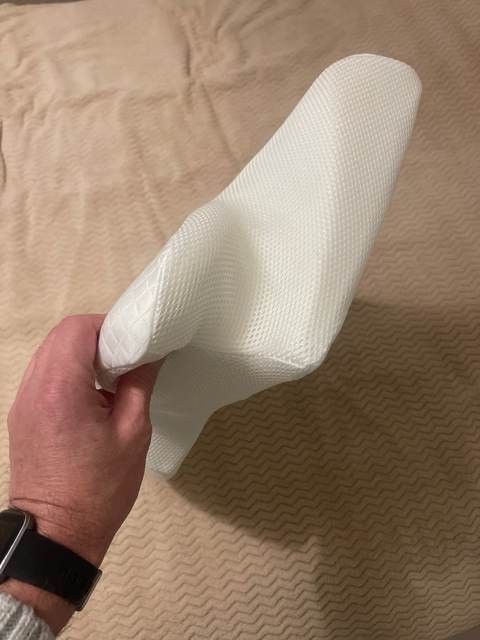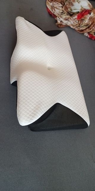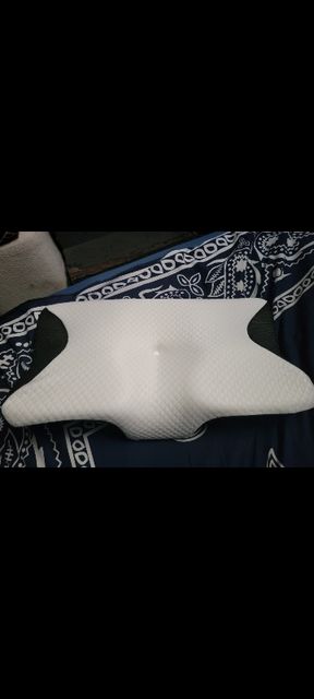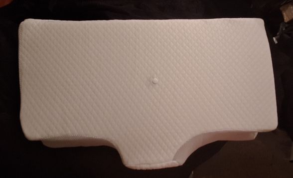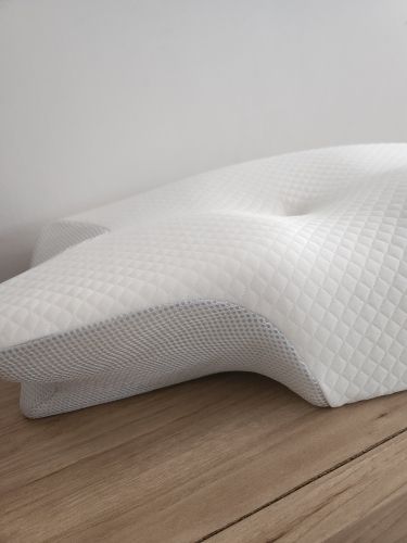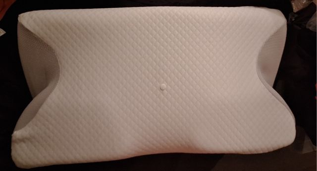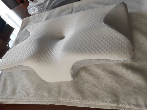 The whole thing is pretty comfortable and very ergonomic. especially the parts for the arms on the sides. if youre a side sleeper, the sides with the arms are perfect for that. for a better ergonomical sleep, i liked sleeping straight on my back laying on the middle. When the pillow came. it stunk, but it is quite normal, had it stand out in the balcony for a while and washed the cover ofe it for an hour on 40°. Then it was almost gone. Honestly: I really recommend it to those, who havent got a good pillow in their house, this is a good choice.