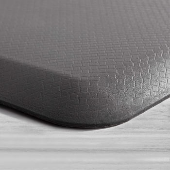 I didn't realize how much ceramic tile in my kitchen would affect my body. Doing anything requiring standing in the same spot for any length of time, caused crippling pain. It wasn't long before I was picking up floor mats anywhere I saw them and experiencing some relief, but not a lot. This mat has been life changing. The thickness is very nice, and it alleviates so much of the leg and foot pain I used to have when I stood.